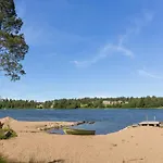 Along with a stone fireplace, guests are provided with a variety of media choices, including a television. This Kukkola villa comes with a bathroom with a separate toilet, a bath, and a shower.